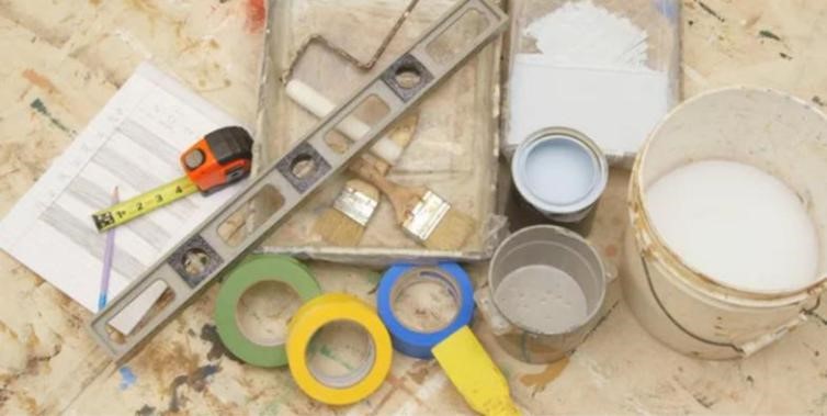 Для початку робіт необхідно підготувати малярський інструмент і матеріали, наприклад: кисті різних розмірів і форм (плоска, кругла), для захисту підлоги і меблів малярська плівка, малярська стрічка, шпателі, відро, лоток для малярного валика, валики різної ширини (за потребою) , інструмент для перемішування фарби, наждачний папір для шліфування шпаклівки, дриль з мішалкою для шпаклівки, шпаклівка, грунтовка для стін глибокого проникнення, при необхідності малярська сходи.
